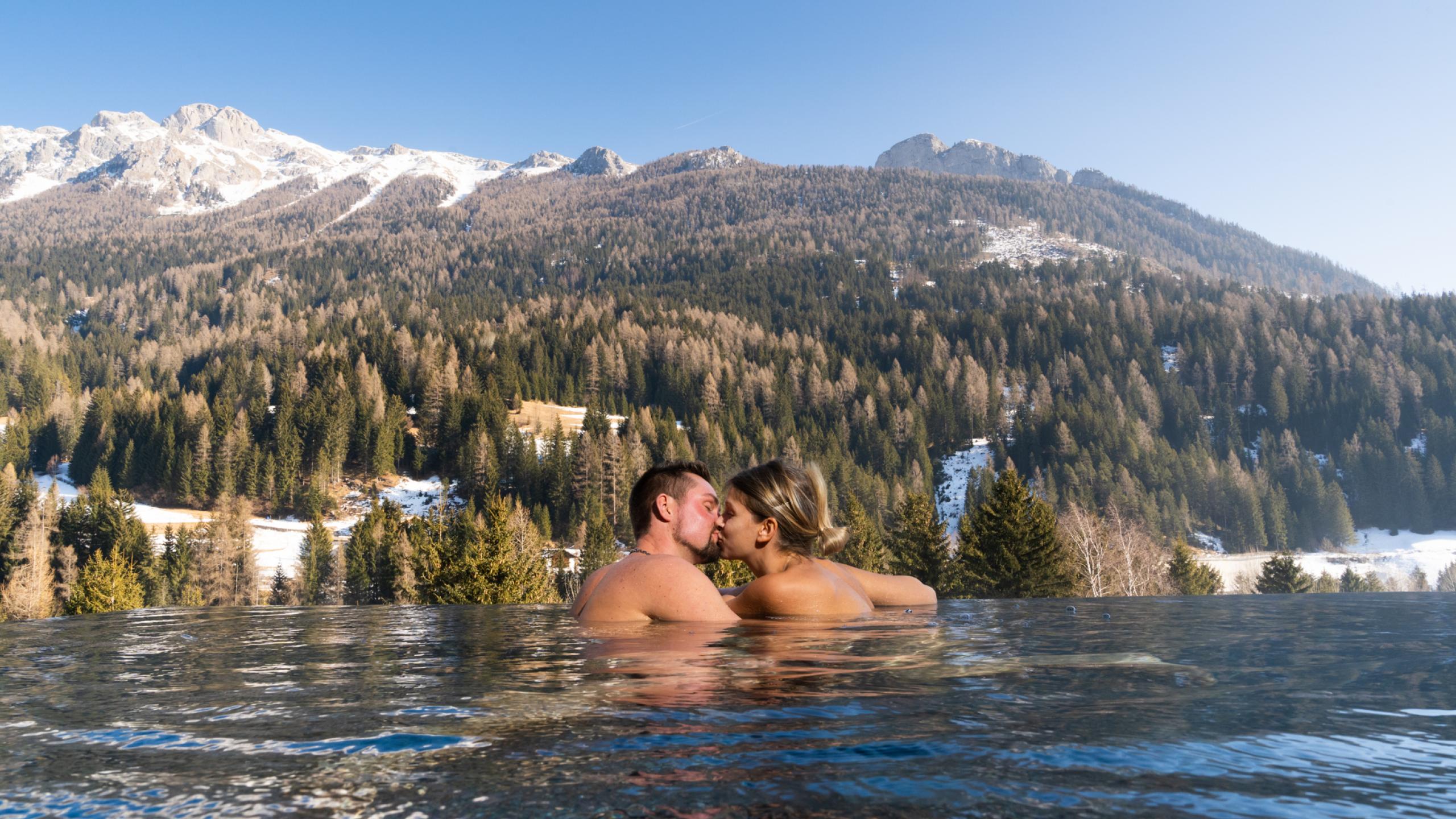 con piscina esterna riscaldata panoramica vista Dolomiti, ed altre zone per il relax del corpo e della mente