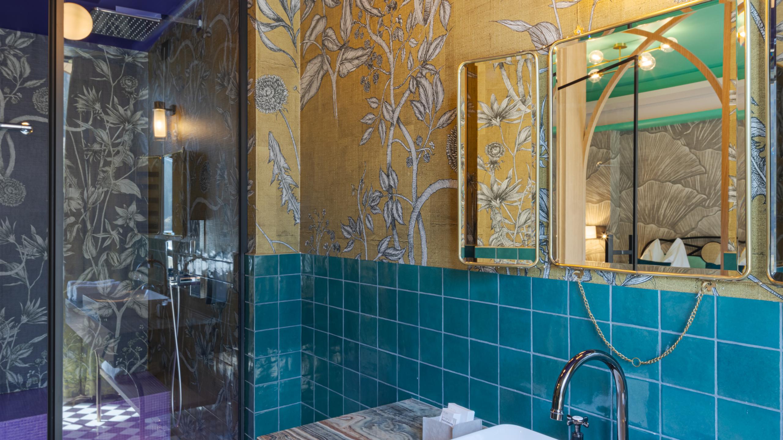 Decorazioni organiche, ispirazione orientale e forte utilizzo dell’ottone.