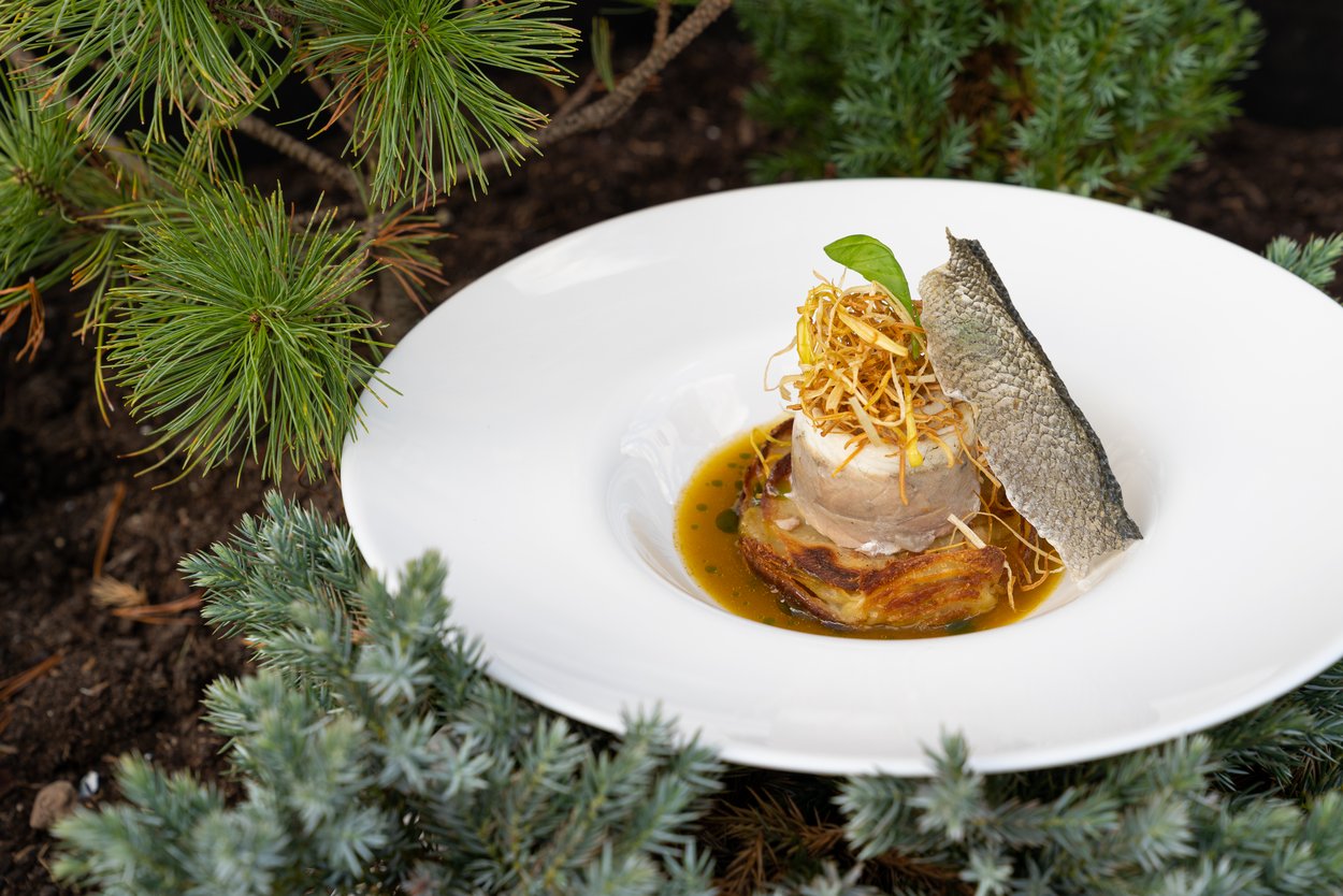 Klingt außergewöhnlich, schmeckt genial: Käse aus der Regiob, hausgemachte Mostarda und japanischer Genmaicha-Eistee – auch Popcorn-Tee genannt. Eine unerwartete Kombination aus Dolomiten und Fernost.
