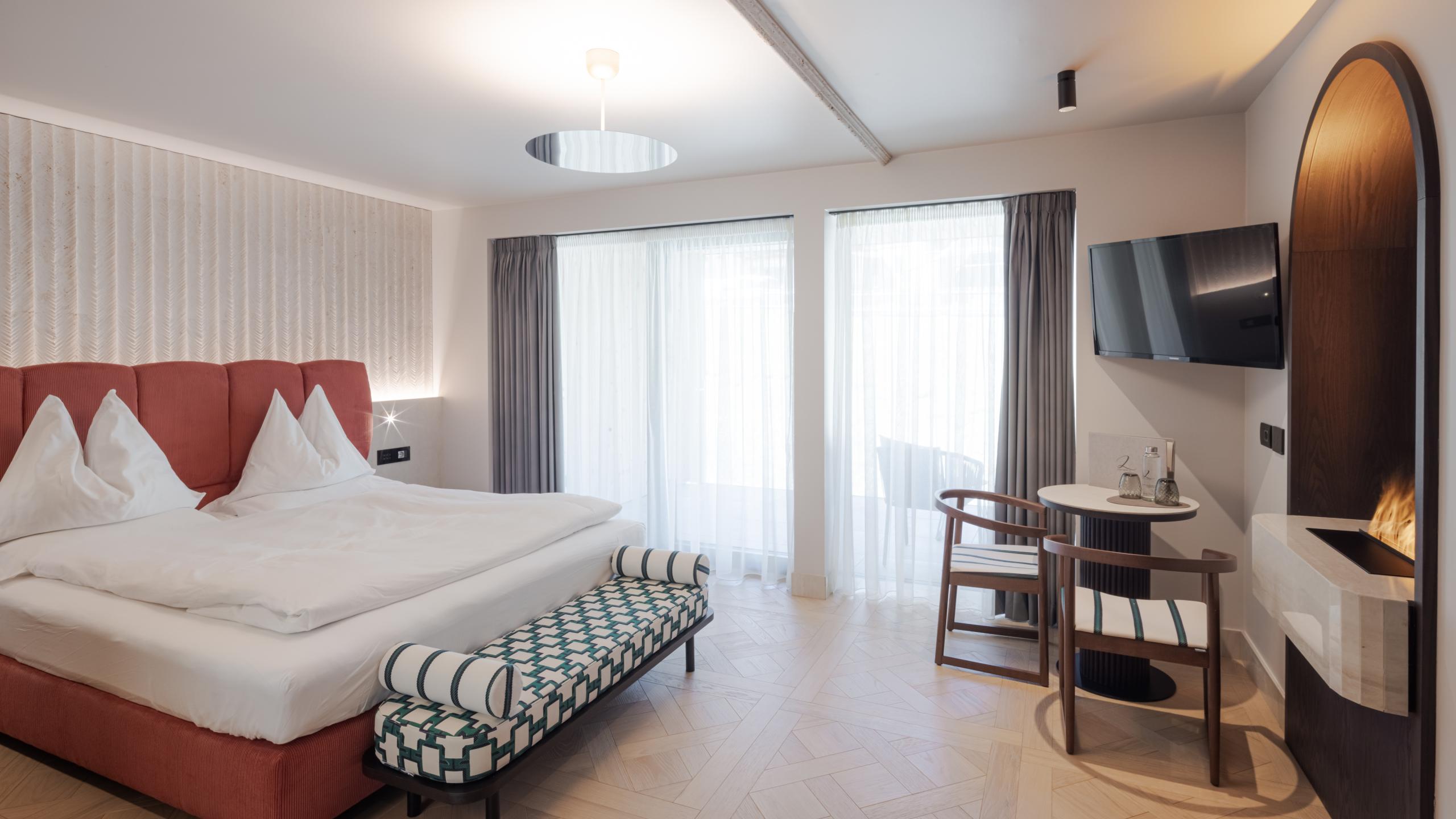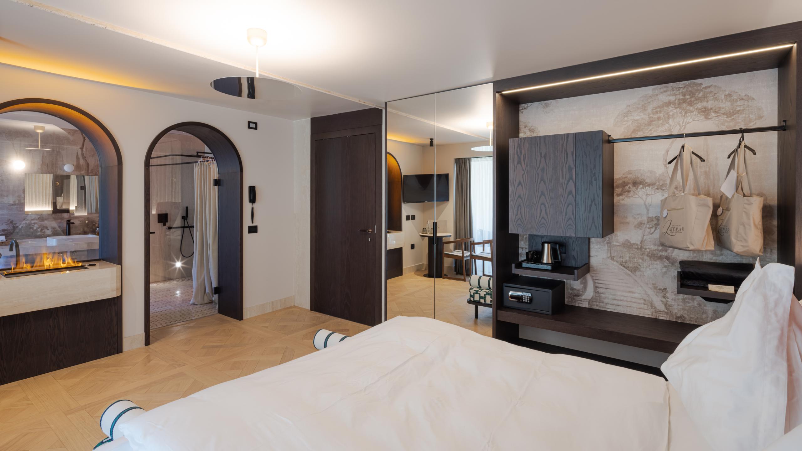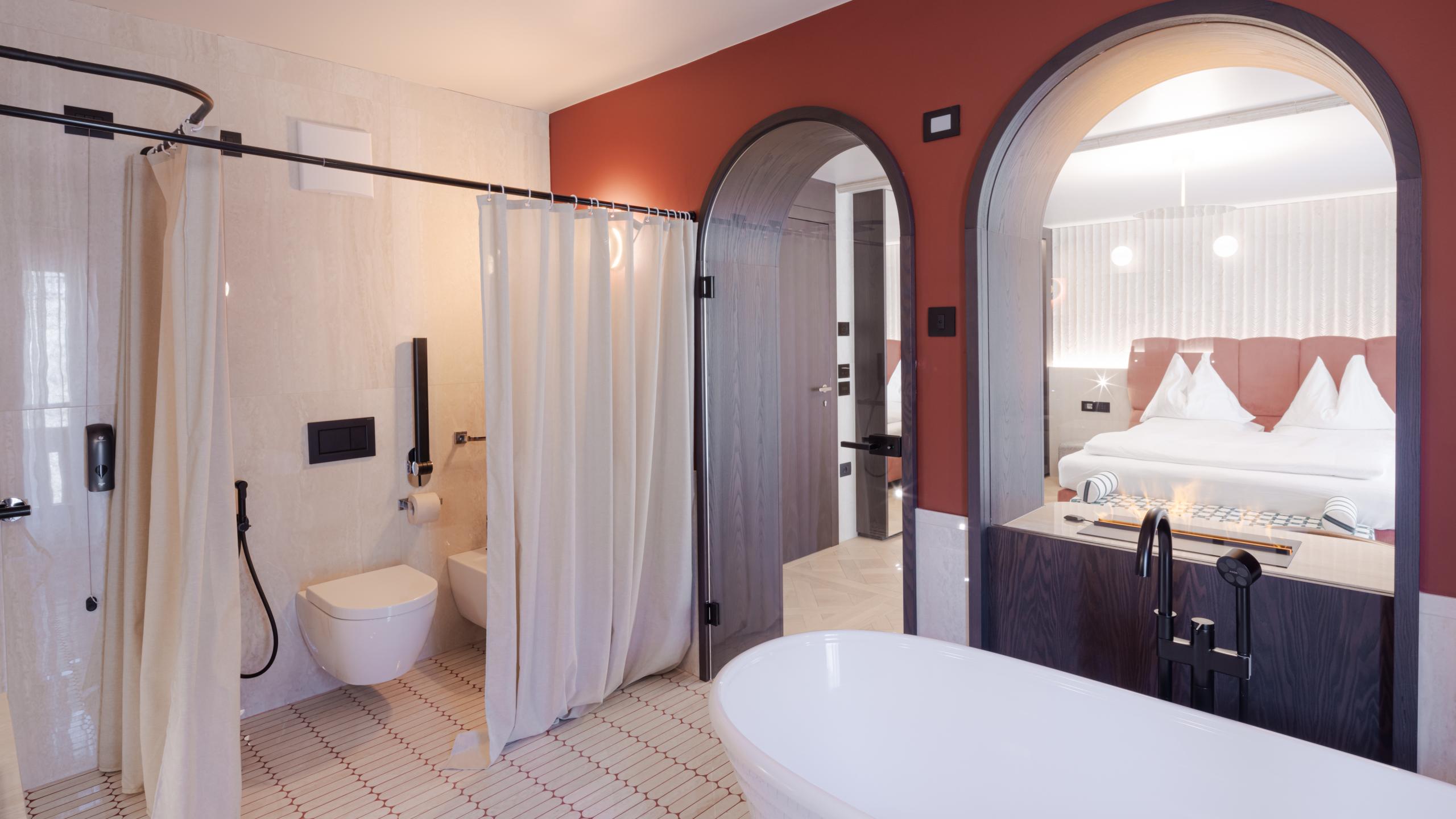 Good to know: The Thermae suite is barrier-free and equipped with special light signals for the deaf and acoustic signals for the blind to ensure maximum comfort for all guests. With expansive interiors, no doors, rooms thoughtfully designed by HandyCREA specifically for those with disabilities, and designer furnishings, this suite exemplifies both style and accessibility.